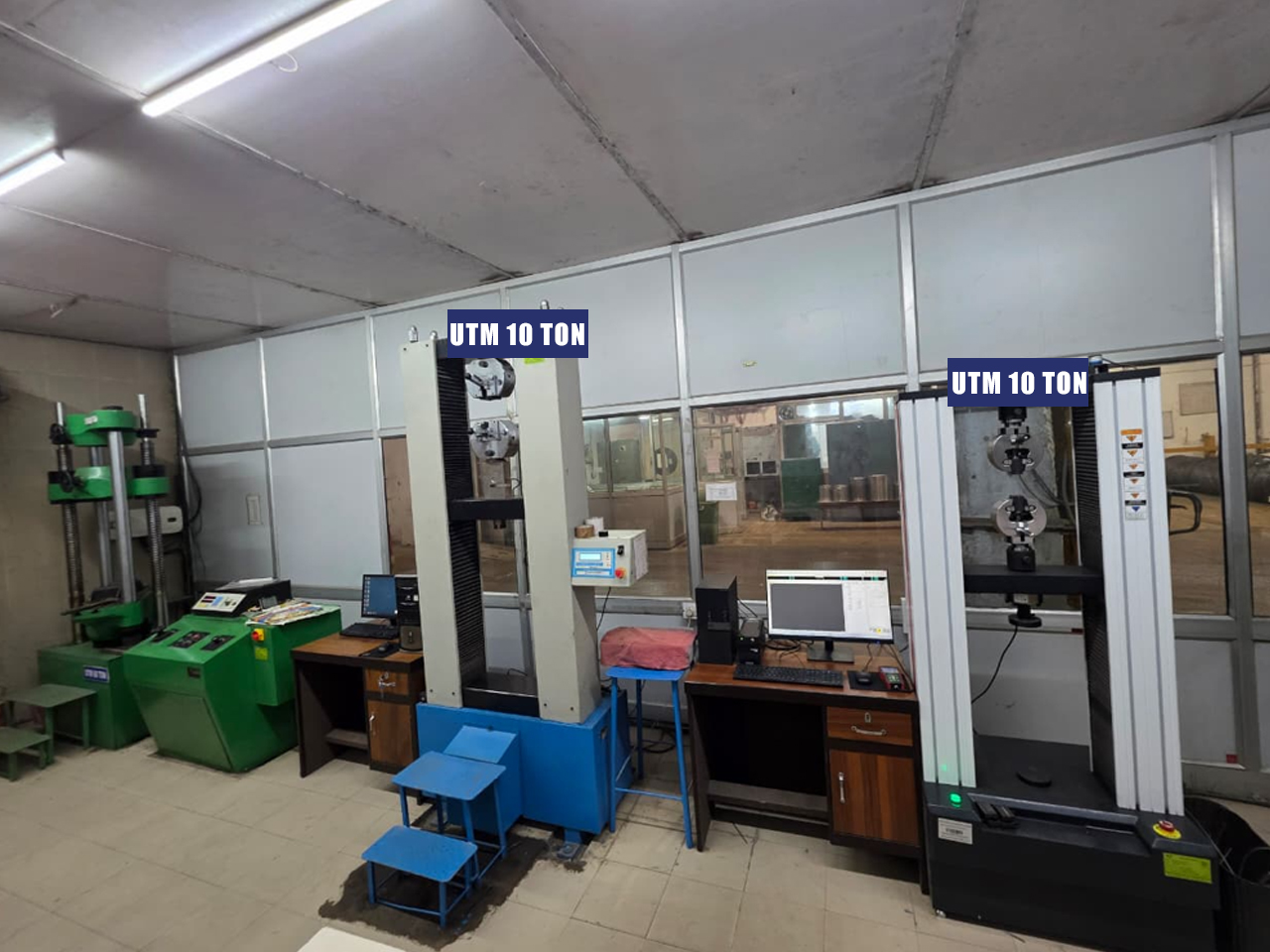 Universal Tensile Testing Machines, Upset Test Machines, Elongation and RA test, Torsion & Bending Testing Machines, Rockwell Hardness Testing Machine, Micro Vickers Hardness for assessing mechanical properties of the material.